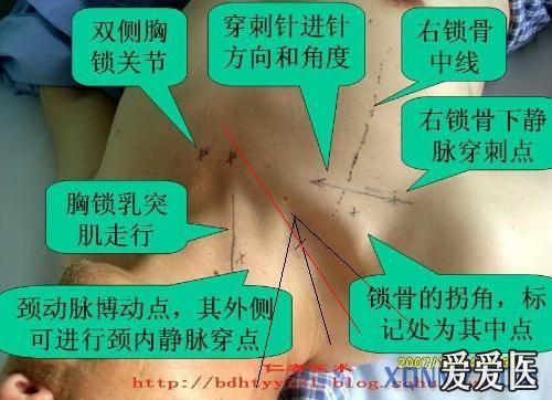 3、我做了很多肥胖、颈短病人的穿刺,一针成功率很高。再说颈短、肥胖病人穿中路有的动脉搏动比较弥散或者不大容易触及,还有穿刺时注射器有可能受下颌阻挡,角度、方向不容易调整,而穿锁骨上就方便多了。