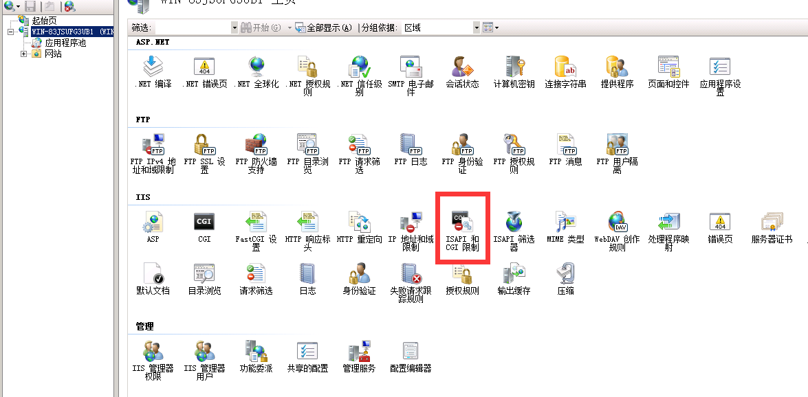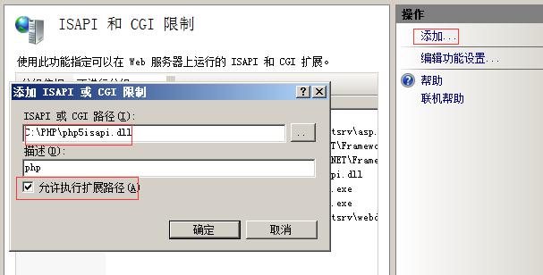 3. 添加we扩展,打开isapi和cgi限制